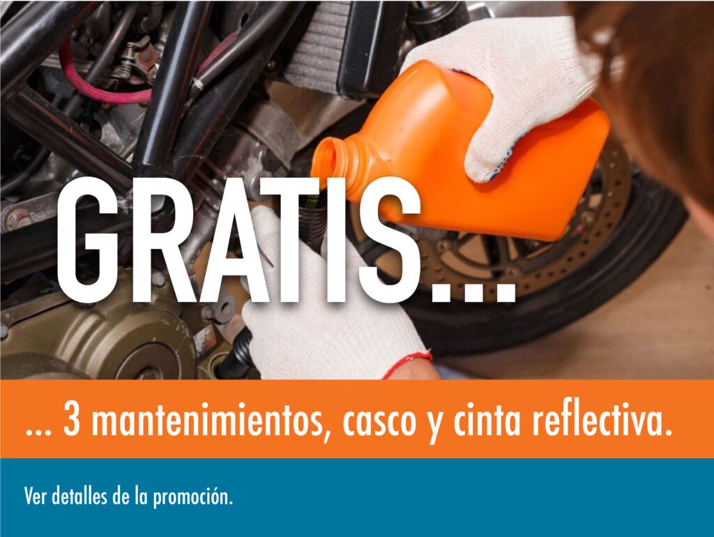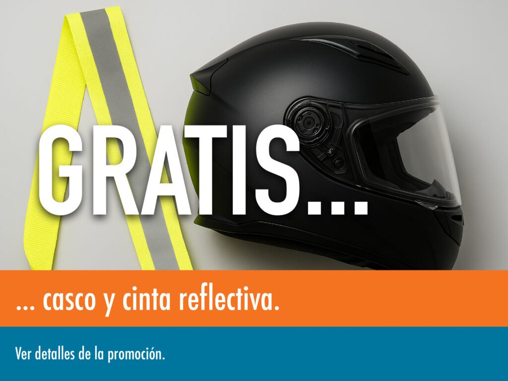 Todas las motos de las marcas Bajaj, Haojue, TVS, UM y Vento incluyen casco y cinta reflectiva.
